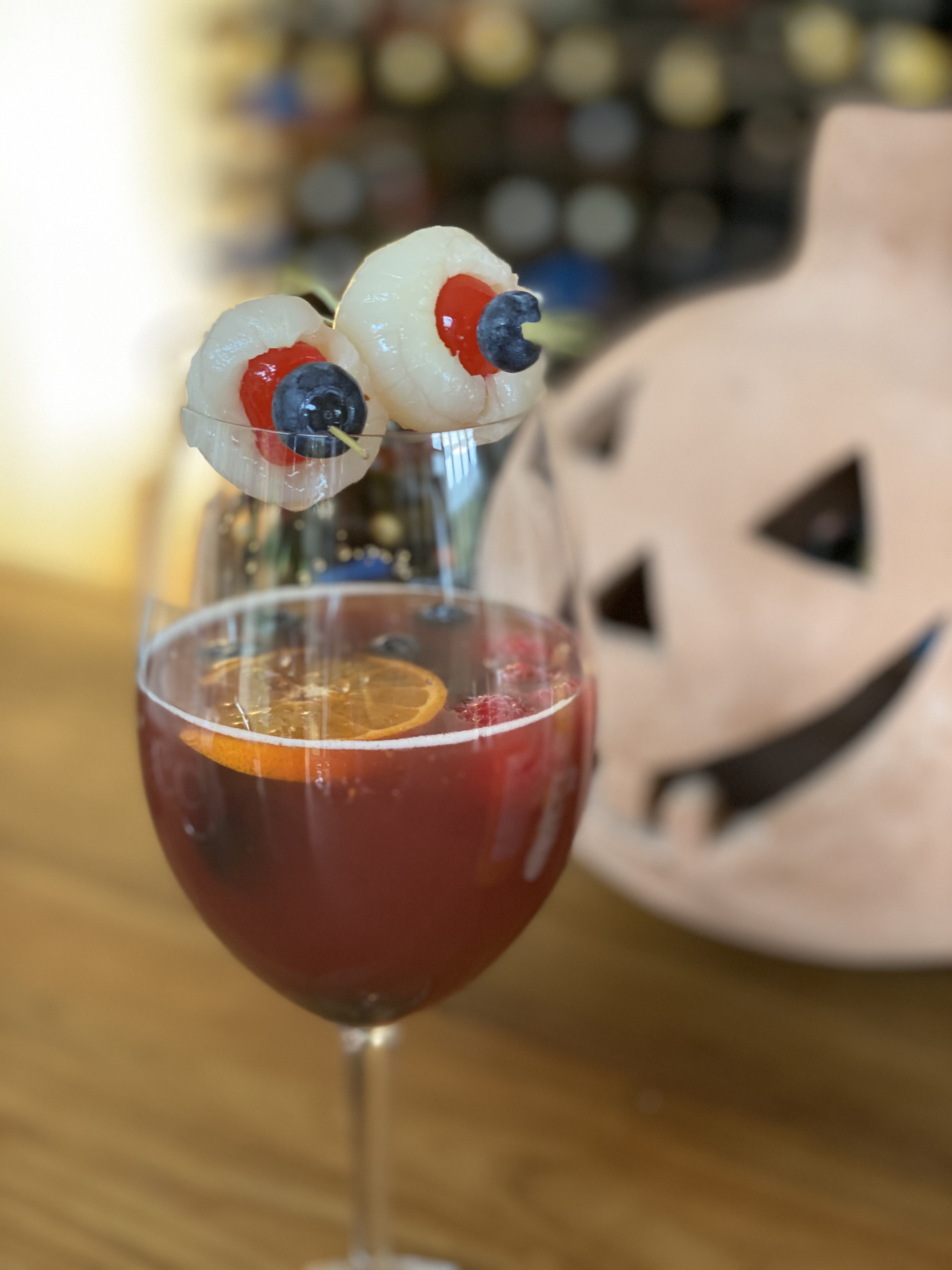 Put a handful of ice in a large jug along with the mixed berries and the sliced clementine. Pour the red wine, clementine juice, cider and Brandy in. Stir gently. Pour into the glass allowing some fruit and ice to enter the glass. To decorate, add the eyes on top!