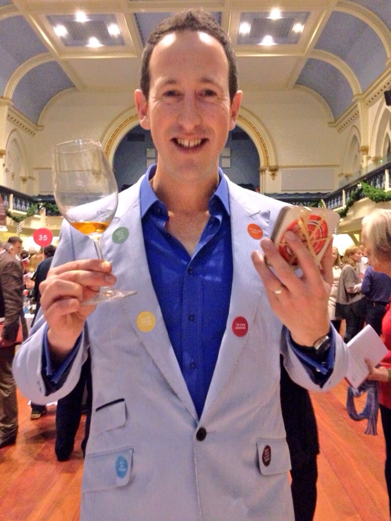 The concept behind how the festival works , takes the idea of taste to another level. Each wine featured fits into one of 6 colour coded categories and you are encouraged to wear stickers representing your favourite wine styles – As modeled by Peter Richards! And lovely colours they are too, designed by Farrow & Ball no less. Each bottle has one of the colours around their neck and in the accompanying booklet, these colours are dotted next to the wine names so you can easily guide yourself around the hundreds of bottles on offer on the many stands in the two beautiful rooms at Winchester’s Guildhall. With the aid of these colours, you are encouraged to choose you own adventure and ‘Follow Your Taste’.